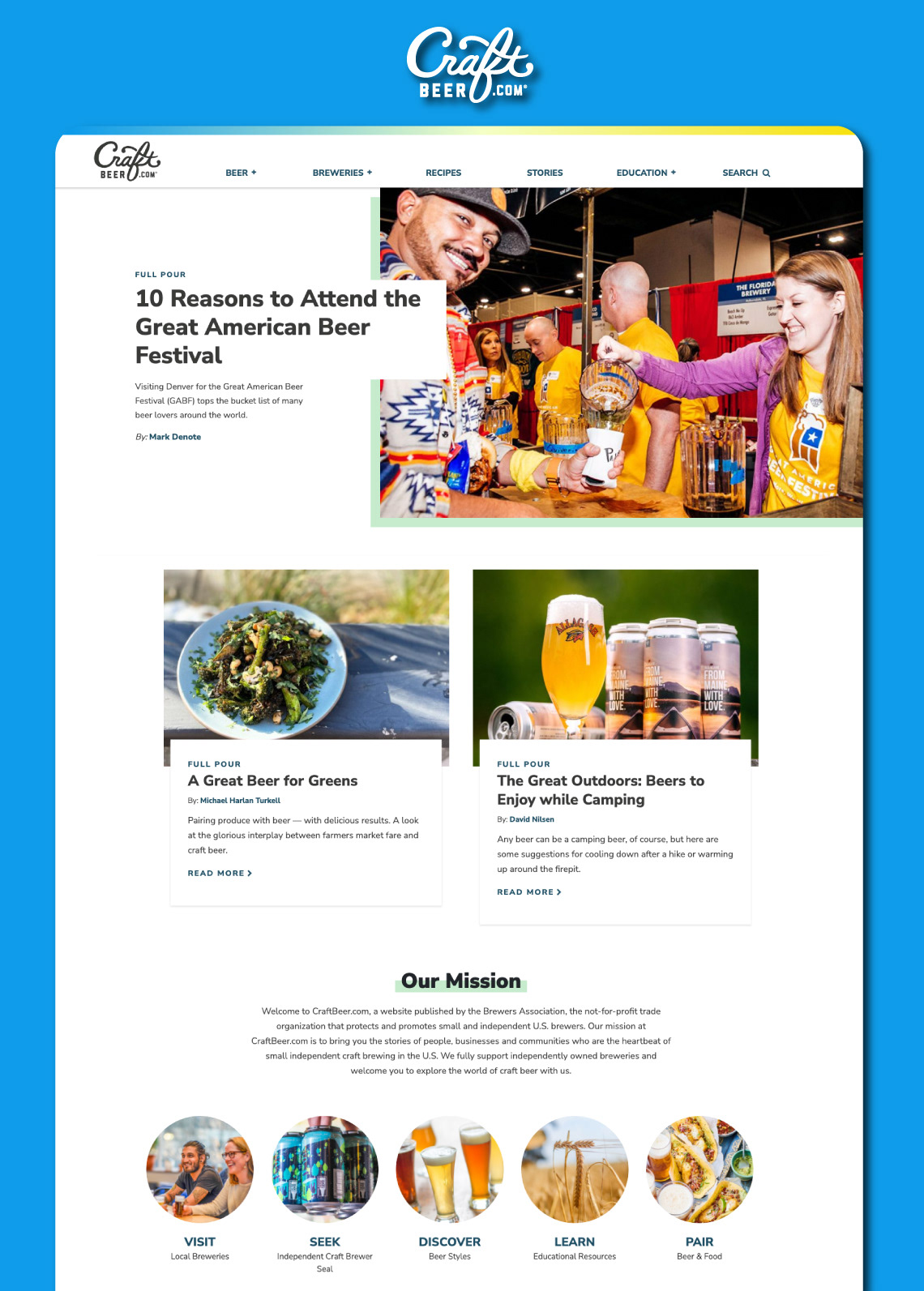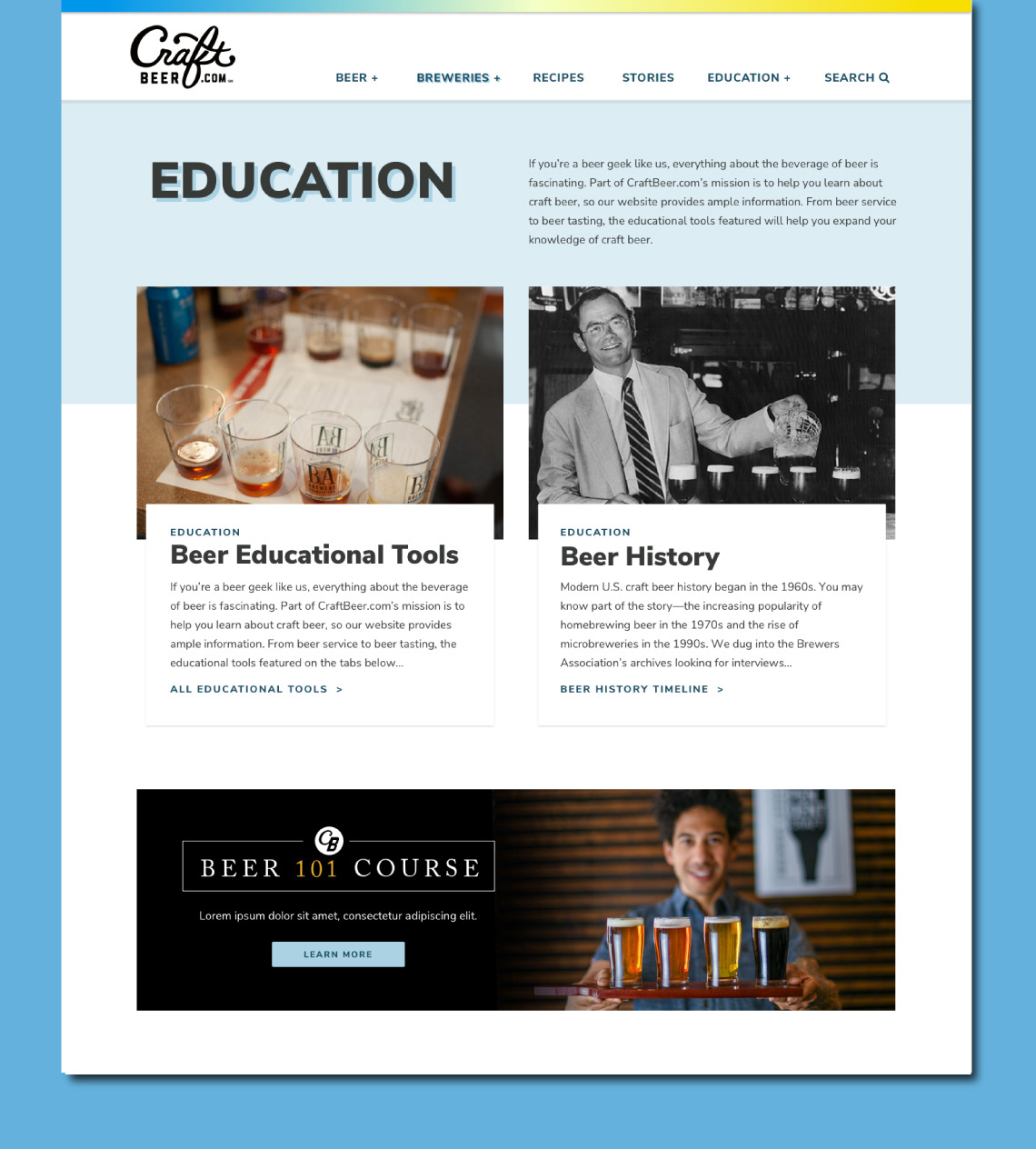 A total re-design of the popular consumer facing website, Craftbeer.com. The purpose of the website is to educate beer enthusiasts on the subject of craft beer and to showcase the diverse community surrounding it.